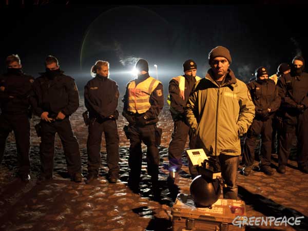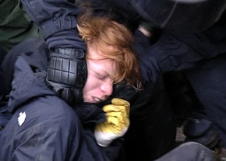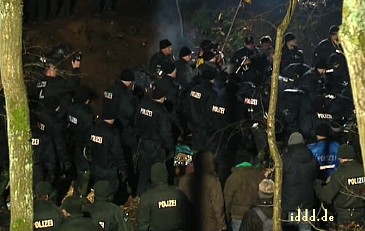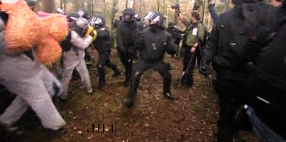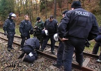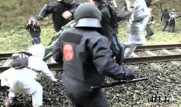 CASTOR, ciąg dalszy ![]() 09.11.2010, Gorleben, Niemcy, Nie pomogło rozgrzebywanie torów, nie pomógł też patent na wykolejenie. Castory dotarły do Dannenberga gdzie są przeładowywane na pojazdy drogowe, ostatnie 50 kilometrów będzie straszne.. Ponad 3 000 osób, pomimo ujemnych temperatur wytrzymuje jeszcze. Policja polewa demonstrantów co siedzą na drogach wodą i czeka aż zamarzną, wtedy ich wynosi. Polizja narzeka że musi tyle pracować. 8.11.2010 musiała wynieść z torów 2000 osób. Media mówią o 20 000 policjantów, oni będą opłaceni z podatków, czyli z pracy osób pracujących. Przemysł atomowy, za wojnę policji z demonstrantami nie musi płacić. Demonstranci aresztowani płacą za spisanie przynajmniej 80 Euro. Policja bije w lesie. Używa ona pał tonfa, widziałem też nunczaku oraz gazu łzawiącego. Nunczaku jest takie szybkie, że kamera wychwyciła tylko smugę. Jak wygląda wynoszenie demonstrantów widać na zdjęciach. Proszę zauważyć to wyrafinowane miażdżenie dziewczynie noska. Policja mówi, że jest mniej gwałtu. Społeczeństwo ma w zapasie blokadę traktorów, blokadę Greenpeace - ciężarówkę z piwem Greenpeace zabetonował na wjeździe z dworca towarowego na drogę do Gorleben. Inżynierowie policyjni całego 8-go listopada nie dali rady odblokować drogi, w ciężarówce siedzą zabetonowani aktywiści greenpeace, by ich nie zranić trzeba specjalnych metod. Na drodze siedzą jeszcze demonstranci oraz owce ostatnim znanym bastionem będzie 300 traktorów. Greenpeace pomierzył 8.11.2010 r.promieniowanie neutronów i gamma, jest ono 480 razy większe niż otoczenia. Pomiar w mikrosivertach na godzinę. Castory nie zatrzymują całego promieniowania!! Policja stojąca 10 metrów od Castor dostaje 250 razy promieniowaniem gamma po jajach - ale to ich zawód. K.P. | |||