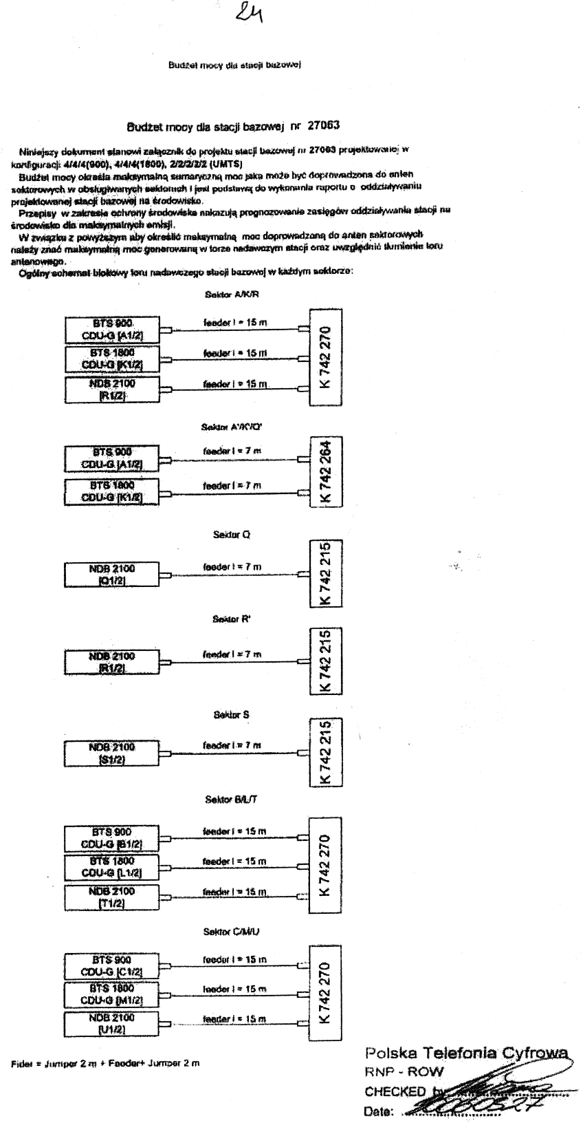 Lublin, budżet mocy dla stacji bazowej ERA Nr 27063 Lublin-LSM str 24 Budżet mocy określa maksymalną sumaryczną moc jaka może być doprowadzona do anten sektorowych w obsługiwanych sektorach i jest podstawą do wykonania raportu o oddziaływaniu projektowanej stacji bazowej na środowisko. Przepisy w zakresie ochrony środowiska nakazują prognozowanie zasięgów oddziaływania stacji na środowisko dla maksymalnych emisji. |