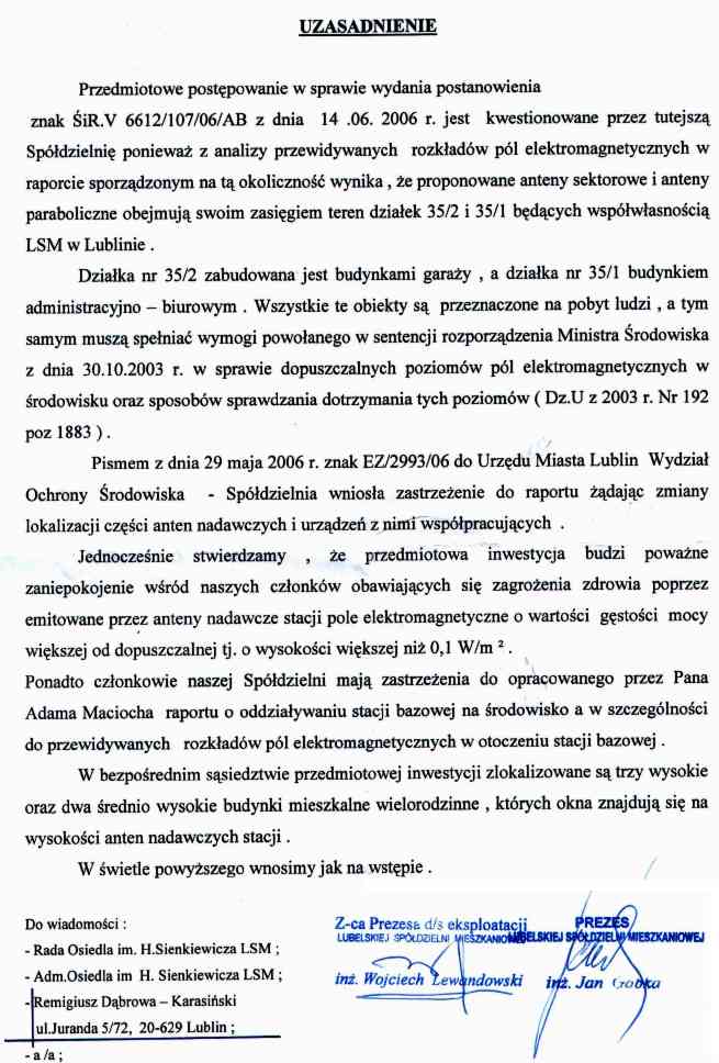 Lublin, strona główna Położenie Lublina Lublin, Folwarczna 37 4 maj 2006 r., Wydział Ochrony Środowiska zawiadomienie o postępowaniu administracyjnym 4 maj 2006 r., Wydział Ochrony Środowiska, prośba o uwagi przez wydział Środowiska i Rolnictwa oraz przez PWIS w Lublinie 13 maja, walka z inwazją Ery w Lublinie, hipermarket E. Leclerc Hipermarket E. Leclerc, mapa sytuacji 19 maja 2006, postanowienie PWIS, uzgadniam środowiskowe uwarunkowania dla ERA Nr 27063 Lublin-LSM 5 czerwca 2006 r., prośba PWIS o wydanie raportu 14 czerwca 2006 r., postanowienie Wojewody Lubelskiego 16 czerwca 2006 r., odpowiedź prezydenta miasta Lublin 20 czerwca 2006 r., przekazanie pisma przeciwników budowy masztów ERY do Prezydenta Miasta Lublin Andrzeja Pruszkowskiego Lublin, zdjęcia sytuacji Szczegół, który robi z raportów makulaturę Raport o oddziaływaniu na środowisko, Zana 19, Lublin 17 lipca 2006 r. pismo przedstawiciela 1000 protestujących osób pana Remigiusza Dąbrowa-Karasińskiego do Prezesa Lubelskiej Spółdzielni Mieszkaniowej, .doc, 28 KB 18 lipca 2006 r., Lubelska Spółdzielnia Mieszkanowa zażalenie na postanowienie wojewody lubelskiego z dnia 14.6.2006 r. exTaktyka falszowania raportów Lipiec 2006 r., w sprawie opracowania: "Raport oddziaływania na środowisko" , doc, 272,7 KB 19 lipca 2006, Prezes Spółki "Lublindis" wnosi zażalenie na postanowienie wojewody lubelskiego 26 lipca 2006, pismo do właściciela Pergranso Sp. z o.o. w Warszawie, .doc, 28 KB 21 sierpnia 2006, pierwszy sukces: Główny Inspektor Sanitarny unieważnia decyzję Wojewódzkiego 28 sierpnia 2006 potwierdzenie Remigiusz Karasiński jest stroną w walce przeciwko inwazji ERY 29 września 2006, Lublin-zwycięstwo, potwierdzenie decyzji Wojewódzkiego Inspektora Sanitarnego w Lublinie przez Głównego Inspektora Sanitarnego Andrzeja Wojtyłę |