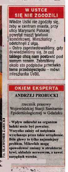 Uzupełnienie -Bydlino 08 Mar 2006, Gelzok cały artykuł -ważne bo tego nie było na stronie internetowej gazety. Wypowiedź PIS (Wojewódzkiej stacji sanitarno-epidemiologicznej) jest fajna, no i opisuje kolejną porażkę operatora w mieście. ![]() |
