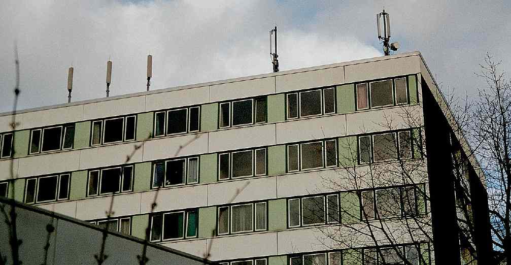 Skandal ! die 10 Sendemasten am St Georg AK bestrahlen nicht nur Kranke sondern auch die Kinder im Kindergarten.