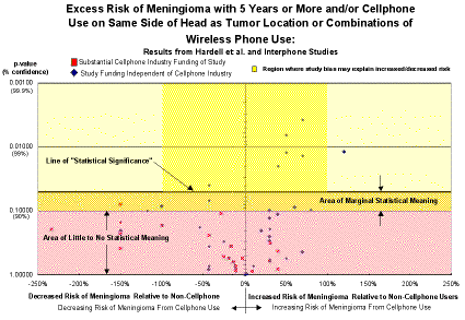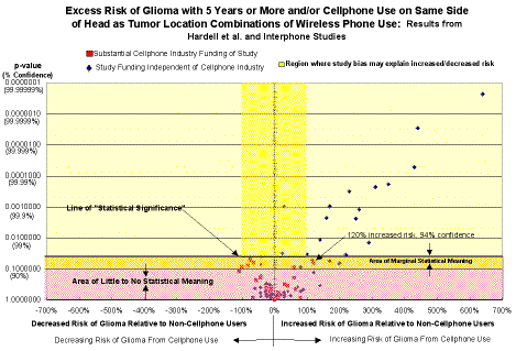 ![]() Mon, 22 Jan 2007 The regular users definition is a dirty trick (From prof' Hardell) Iris Atzmon SH......this is a secret study. no press release. Let's keep quiet about it, so none will know. Have you heard about the new study of the Interphone from 5 countries? it found an increased risk for brain tumors at the same side of the brain where the the mobile phone was used more than 10 years (on the basis of 77 cases and 117 controls). Have you read in the news that prof Hardell says that these results actually confirm his findings? Have you read in the news that when the authors write in the abstract, "We found no evidence of increased risk of glioma related to regular mobile phone use", by "regular" they mean on average once a week during at least 6 months. The regular users definition is a dirty trick, they can include people who use the phone rarely and bias/ dilute the risk findings. If you haven't heard all this, you are not alone. There was simply no press release. But you probably couldn't get away of all the press items on the Danish study that denied a link yet did not reveal it was industry funded that was white-washed through the Danish association"against" cancer. Mobile phone use and risk of glioma in 5 North European countries Int J Cancer. 2007 Jan 17; [Epub ahead of print] The full document on iddd.de, 23.01.2007, .doc, 657,2 KB Epidemiology Anna Lahkola 1 * , Anssi Auvinen 1 2, Jani Raitanen 1 2, Minouk J. Schoemaker 3, Helle C. Christensen 4, Maria Feychting 5, Christoffer Johansen 4, Lars Klåboe 6, Stefan Lönn 5, Anthony J. Swerdlow 3, Tore Tynes 6 7, Tiina Salminen 1 2 1STUK, Radiation and Nuclear Safety Authority, Helsinki, Finland 2Tampere School of Public Health, University of Tampere, Tampere, Finland 3Section of Epidemiology, Institute of Cancer Research, Sutton 4Institute of Cancer Epidemiology, Danish Cancer Society, Copenhagen, Denmark 5Institute of Environmental Medicine, Karolinska Institutet, Stockholm, Sweden 6Institute of Population-Based Cancer Research, The Cancer Registry of Norway, Oslo, Norway 7Norwegian Radiation Protection Authority, ?sterÆs, Norway email: Anna Lahkola (anna.lahkola@stuk.fi) *Correspondence to Anna Lahkola, STUK, Radiation and Nuclear Safety Authority, P.O. Box 14, FIN-00881, Helsinki, Finland Fax: +358-9-759-88-670. Funded by: Academy of Finland; Grant Number: 80921 Swedish Research Council Quality of Life and Management of Living Resources program of European Union International Union against Cancer (UICC); Grant Number: RCA/01/08 Mobile Manufacturers' forum and the GSM Association Emil Aaltonen Foundation Doctoral Programs for Public Health Mobile Telecommunications, Health and Research (MTHR) KEYWORDS mobile phones o brain tumors o case-control studies ABSTRACT Public concern has been expressed about the possible adverse health effects of mobile telephones, mainly related to intracranial tumors. We conducted a population-based case-control study to investigate the relationship between mobile phone use and risk of glioma among 1,522 glioma patients and 3,301 controls. [JUNK SCIENCE with dirty tricks] ![]() For more than 10 years of mobile phone use reported on the side of the head where the tumor was located, an increased OR of borderline statistical significance (OR = 1.39, 95% CI 1.01, 1.92, p trend 0.04) was found, whereas similar use on the opposite side of the head resulted in an OR of 0.98 (95% CI 0.71, 1.37). Although our results overall do not indicate an increased risk of glioma in relation to mobile phone use, the possible risk in the most heavily exposed part of the brain with long-term use needs to be explored further before firm conclusions can be drawn. |