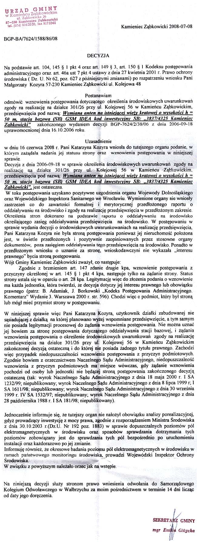 do strony głównej sprawy stacji PTK Centertel Orange (France Telecom) w Kamieńcu Ząbkowickim | ||