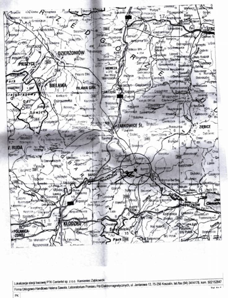 Załącznik nr 1: Lokalizacja stacji bazowej PTK CENTERTEL nr 4963 KAMIENIEC ZĄBKOWICKI | ||