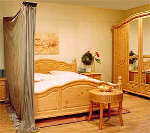 Baldachim jak na fotografii, można wygodnie zsunąć na stronę. Baldachim 50 dB dla łóżka pojedyńczego (1,2m x 2,2m x 2,2m) kosztuje odpowiednio taniej: 1298 euro można kupić też tkaninę 50 dB na metry - 1m2 (1,4m x 0,7m) kosztuje 59,95 euro. |