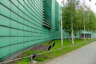 ![]() A tak bronią się przed wysokimi częstotliwościami HF ambasady skandynawskie w Berlinie- masywną fasadą z miedzianych płyt. Ma to dodatkową zaletę, że nie można stwierdzić z zewnątrz kamerami rentgenowskim czy elektromagnetycznymi, gdzie są pracownicy i jaki mają styl poruszania się. Podsłuch i obserwacja z zewnątrz jest bardzo utrudniona. |