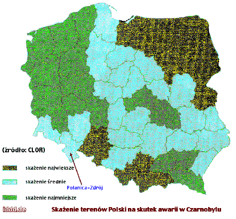 Polanica Zdrój niebezpieczna dla zdrowia kuracjuszyCzy jest sens poinformować byłą żonę Jana Kulczyka? Wczasy w nowym hotelu SPA w Polanicy? 12.5.2008 r. Według sądu rejonowego we Wrocławiu inspektorzy budowlani jeśli nic nie robią to nie są odpowiedzialni - nikt nie jest odpowiedzialny, KAFKA się kłania. Dlatego wyrok sądu rejonowego we Wrocławiu uwypukla rolę darmowych urzędów administracji - bez łapówek urzędnicy w Kłodzku i we Wrocławiu nie są za wykonywanie prawa odpowiedzialni. TO Ty obywatelu musisz opłacić gangsterów by ci pomogli dojść do prawa. Logiczny z tego wyroku wniosek nie płać obywatelu podatków tylko zbieraj pieniądze na zapłatę dla gangsterów. W przypadku Polanicy myślę, że wystarczyłby tani import z Ukrainy, myśmy im też za darmo pomogli w ich pomarańczowej rewolucji. Co ma z tym wspólnego Pani Grażyna Kulczyk? Najbogatsza Polka inwestuje w Polanicę Zdrój, nie mając pojęcia jak niebezpieczna dla zdrowia jest Polanica Zdrój.Ona stawia tam hotel odnowy biologicznej SPA. Otóż nikt jej pewnie nie powiedział, że po wybuchu w Czarnobylu nie ma w Polanicy zdrowej rodziny. W każdej rodzinie przynajmniej jedna osoba zmarła na raka. Dlatego tak ważne by było przeforsowanie prawa o uzdrowiskach i wyrzucenie wszystkich masztów stacji bazowych telefonii komórkowej GSM i UMTS z centrum Polanicy. Promieniowanie jonizujące od uwolnionych w Czarnobylu izotopów i naturalna promieniotwórczość oraz niejonizujące- te ze stacji bazowej przy ul. Kościelnej 8 kumulują się w swoich oddziaływaniach na organizmy żywe. Dodatkowe obciążenia promieniowaniem przez telefonię komórkową nie jest korzystne dla kuracjuszy, mieszkańców i turystów. Przez stacje bazowe telefonii komórkowej jest Polanica wręcz miejscem niebezpiecznym dla zdrowia. Stawiam pytanie czy miejsce tak obciążone promieniowaniem naturalnym i sztucznym ma prawo posiadać status uzdrowiska? Dla tych co nie wiedzą: okres połowicznego rozpadu izotopów z Czarnobylu jak Cs- 137 to 30 lat a Sr-90 to 28 lat. Ile tego spadło patrz na obrazku. | |||
