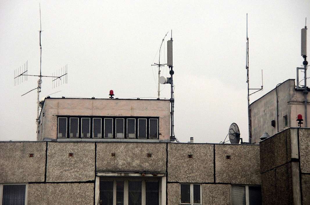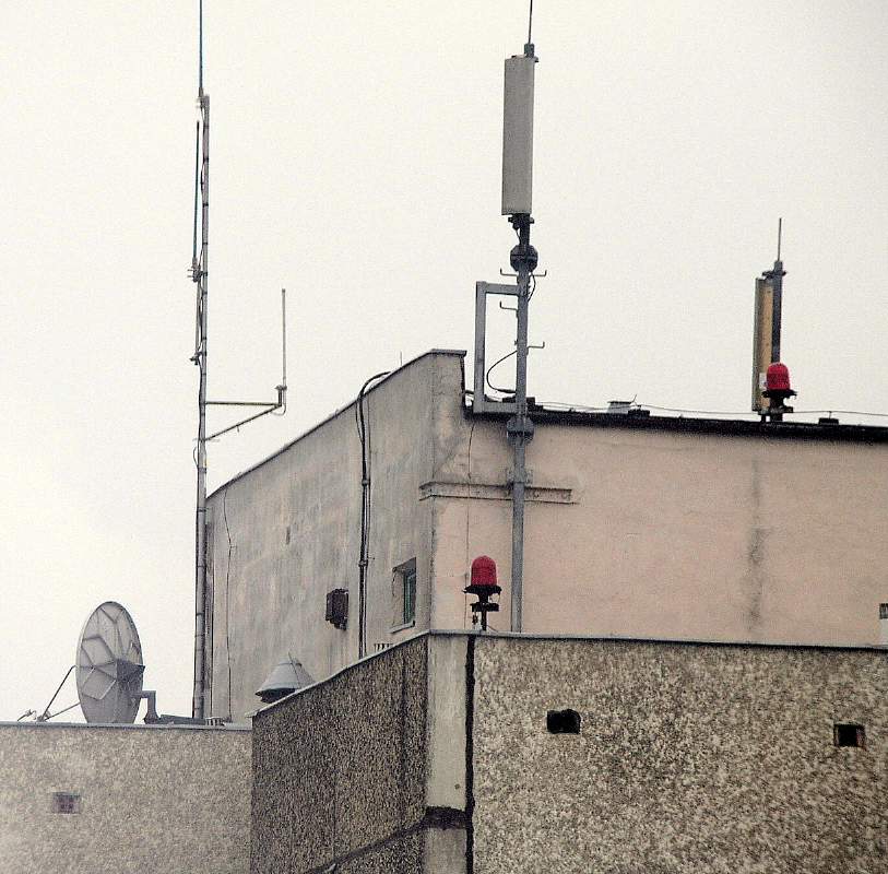 Stacja bazowa ERY (GSM 900 MHz) na bloku mieszkalnym na osiedlu Rusa 11. Jedna z najstarszych stacji bazowych w Poznaniu. Budynek jest wręcz naszpikowany antenami. Duża ilość radiolinii świadczy o tym, że jest to węzeł radioliniowy ERY. |