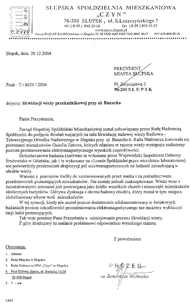 Neu hinzu | suchen | Statistik | Umrechner | Grenzwerte | Beweise Liste von 60 Toten und 53 Erkrankten beim Mobilfunkturm in Stolp-Original (scan, 300 KB) Die Namensliste der Betroffenen, aus dem Umkreis vom Mobilfunk-und Fernsehturm in Stolp/Słupsk, Polen, die an Krebs oder Herzkreislaufkrankheiten erkrankt oder gestorben sind. Słupsk-Fotki (Fotos aus der Umgebung) Dla waszych wpisów i kontaktów księga i notes: "Przeciwko masztom telefonii komórkowej" Podpisy: tutaj można bezpośrednio wpisać swoje poparcie i podpisać list do papieża. Prosimy o adresy kościołów z antenami, można je tu anonimowo wpisywać Zdjęcia w formacie jpg wzmacniają dodatkowo wypowiedź adresów.. Można je przesyłać na webmaster@umtsno.de Gästebuch-de Warszawa | Słupsk | Rybnik | Jasienica | Ostrołęka | Polanica | Świdnica | Brodnica | Ruski Bród |