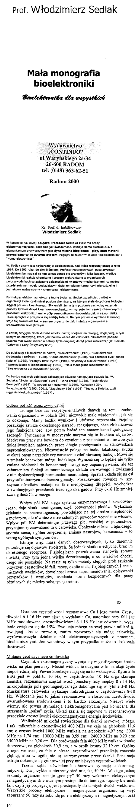 Profesor Włodzimierza Sedlak, Mała monografia bioelektroniki, str. 85: "Odbiór pól EM przez żywy ustrój, wpływ pól EM sięga systemu enzymatycznego i krwiotwórczego, daje skutki teratogenne, czyli potworności płodów. Wykazano działanie na spermatogenezę, powodujące na tej drodze niepłodność u mężczyzn, ale również z niewiadomych powodów wypadanie włosów." |