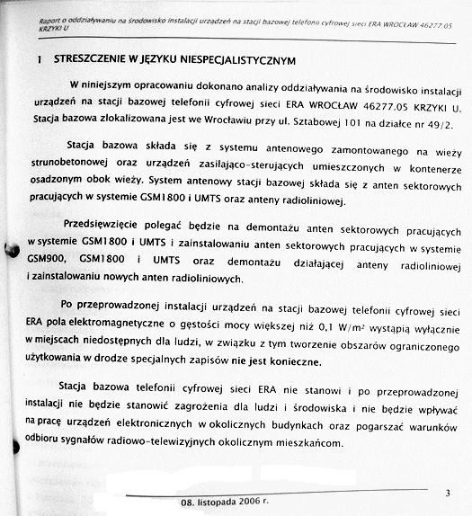 8.11.06, Raport oddziaływania na środowisko, Streszczenie w języku niespecjalistycznym