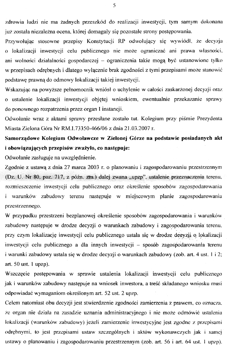 18 kwietnia 2007 r. Zielona Góra, Szkoła Podstawowa nr 14, Samorządowe Kolegium Odwoławcze w Zielonej Górze Robert Gwidon Makarowicz i Janusz Zawieja uchylają wbrew woli mieszkańców i Prezydenta Miasta w całości zaskarżoną przez P4 decyzję i przekazują sprawę do ponownego rozpatrzenia przez organ I instancji. Swoim działaniem na korzyść firmy P4 panowie Robert Gwidon Makarowicz i Janusz Zawieja oszukują dotkniętych inwazją P4 mieszkańców oraz Prezydenta Miasta Zielona Góra rzucając na siebie podejrzenie o korupcję. |