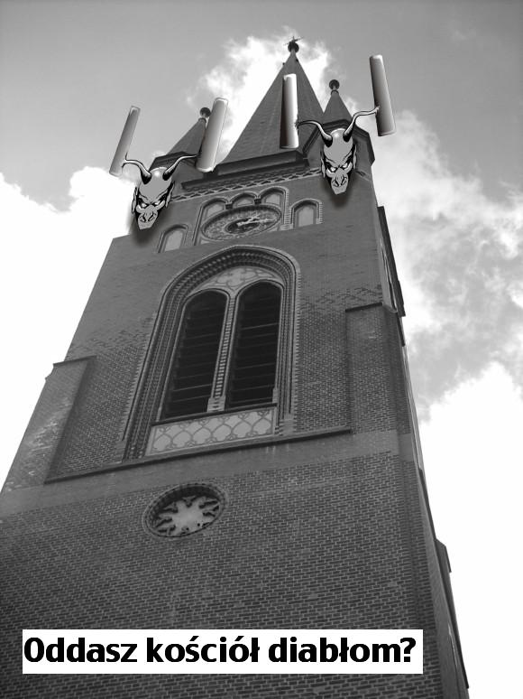 Zamiana kościoła w Żorach na BTS25 luty 2006 patrz Oddać kościół diabłom? Wszczynam postępowanie administracyjne w sprawie zmiany sposobu użytkowania wieży kościelnej (dzwonnicy) przy ul. Boryńskiej 45 Św. Stanisława Męczennika na wieżę telefonii komórkowej. |
