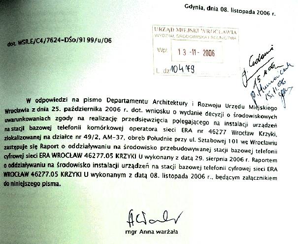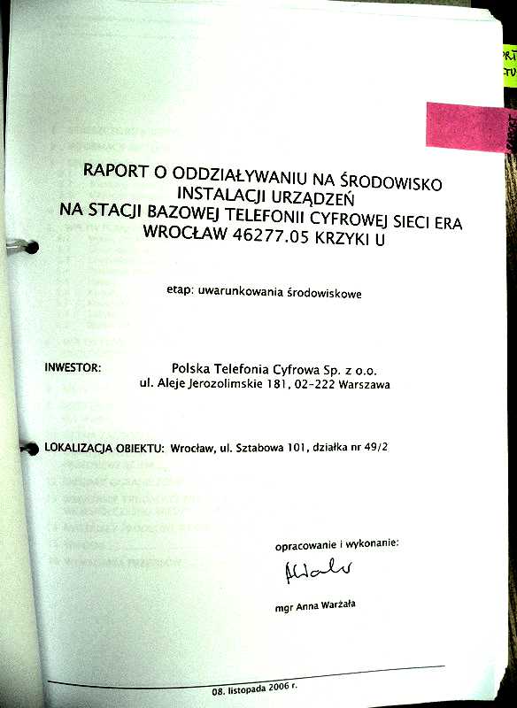8.11.06, Raport oddziaływania na środowisko, strona tytułowa, pismo do raportu Anna Warżała